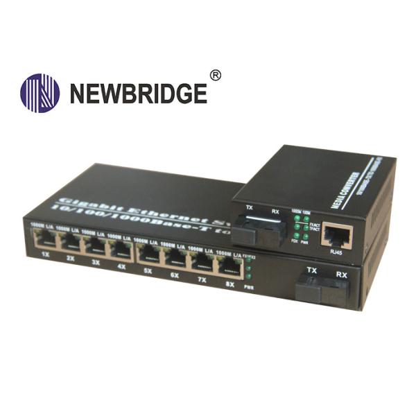 10 100 1000M Media Converter Single Mode Ethernet fiber converter with 8 port Switch