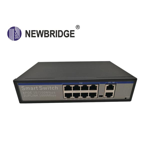 Newbridge® The switch is a compact 8+2 port PoE switch,with 8 10/100 Mbps PoE Ports, and 2 10/100/1000Mbps Uplink Port,The 8 PoE ports can automatically detect and provide power for any connected 802.3af Powered Device(PD), such as VOIP phones,IP Cameras,all PoE ports support the IEE802.3af standard,with a maximum output of 15.4w each port